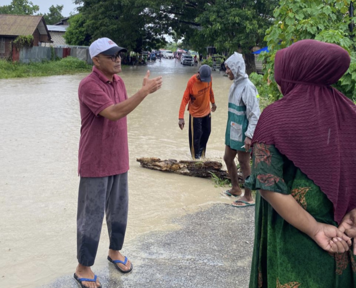 Banjir yang mengepung jalan raya dan pemukiman warga ini disebabkan oleh luapan sungai Wailola Besar akibat hujan deras yang mengguyur wilayah tersebut sejak siang.