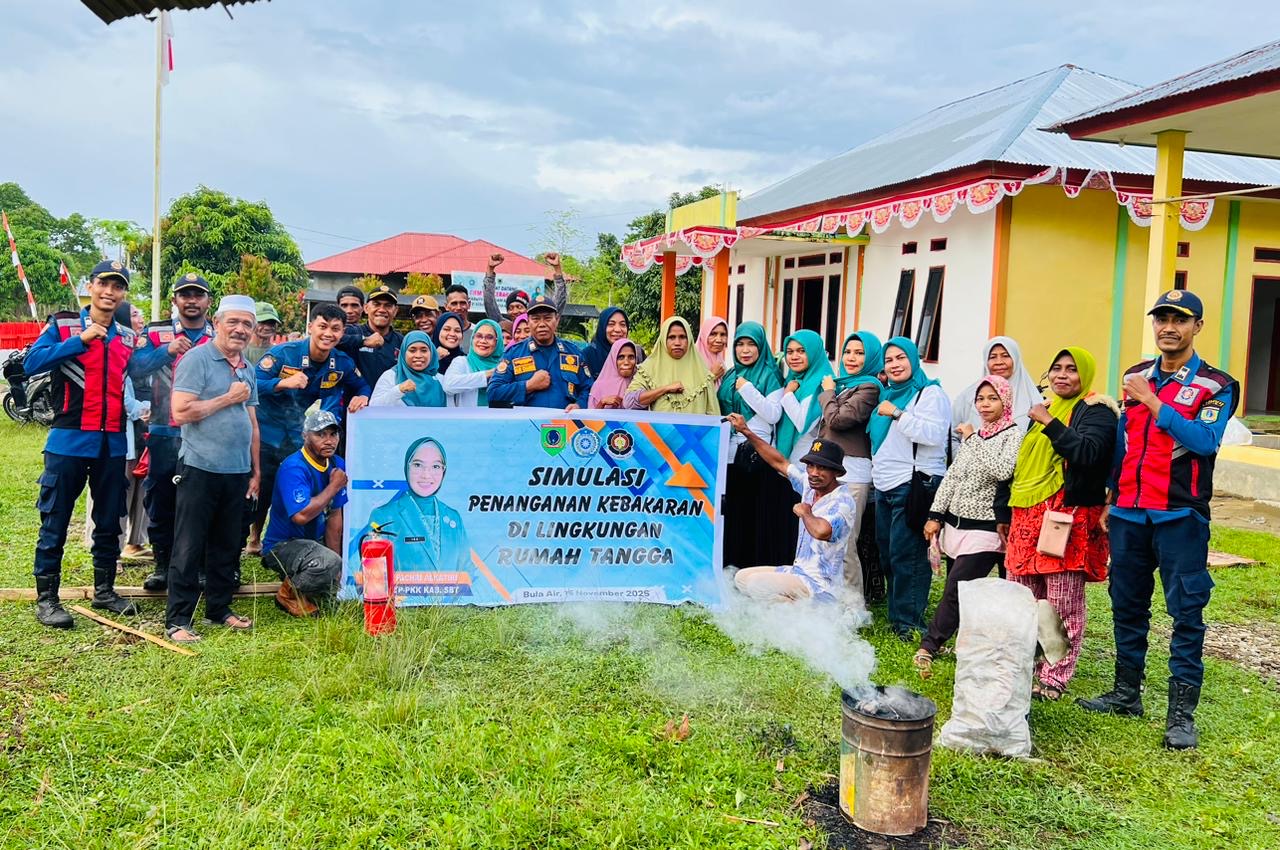 Bula, JENDELASERAM.COM — Tim Penggerak Pemberdayaan dan Kesejahteraan Keluarga (TP-PKK) Kabupaten Seram Bagian Timur (SBT) menggandeng Dinas Pemadam Kebakaran (Damkar) SBT menggelar simulasi penanganan kebakaran di lingkungan rumah tangga.