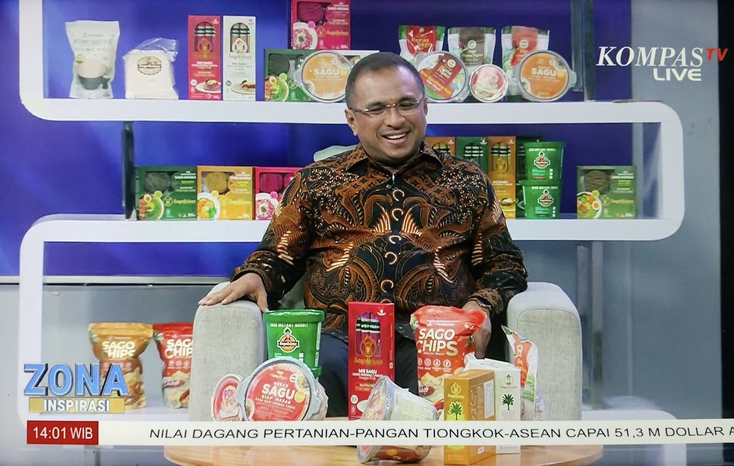 Acara yang disiarkan secara langsung dari studio Orange Kompas TV itu dipandu oleh Host, Diana Dwika dengan episode SBT Gerak Cepat Hilirisasi Sagu Menuju Pangan Nasional.