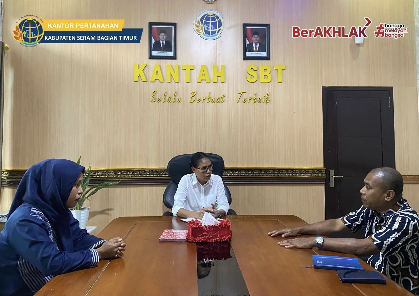 Kunjungan Kadis Nakertrans SBT Mochtar Rumadan ini diterima langsung oleh Kepala Kantor BPN SBT Rosa F.C. Batmomolin di ruang kerjanya.