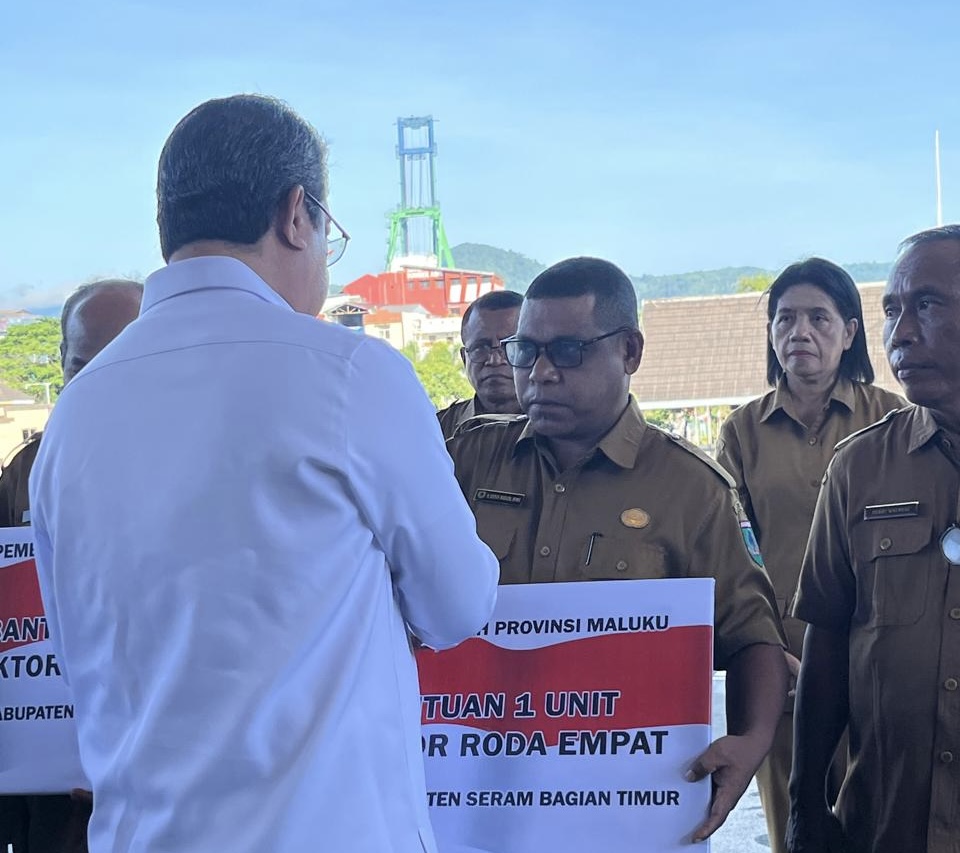 Bantuan tersebut diserahkan oleh Gubernur Maluku, Hendrik Lewerissa kepada Pelaksana Tugas (Plt) Kepala Dinas Pertanian SBT, Sofyan Waraiya di depan Kantor Gubernur Maluku pada Senin (15/12/2025).