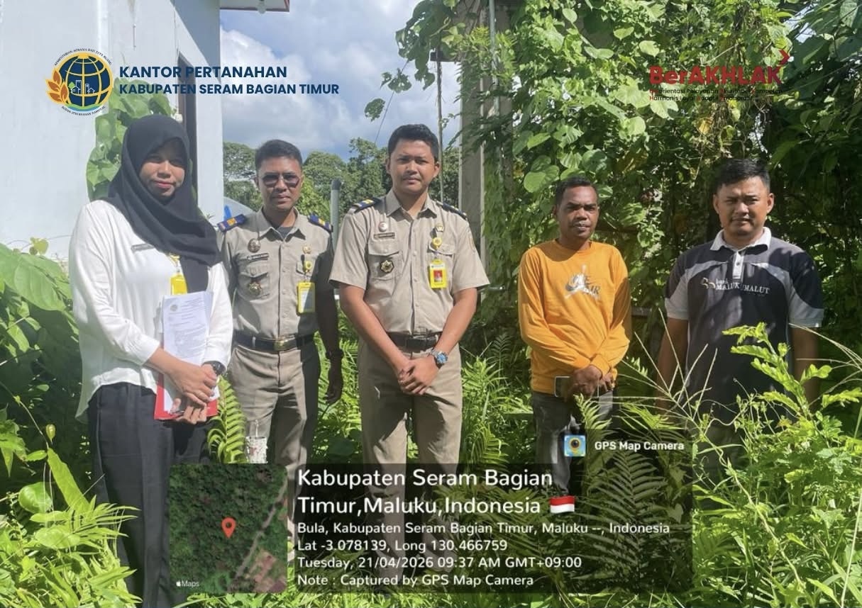 Bula, JENDELASERAM.COM — Kantor Pertanahan Kabupaten Seram Bagian Timur (SBT) melakukan kegiatan pemeriksaan tanah di Desa Kampung Gorom, Kecamatan Bula pada Selasa 21 April 2026.